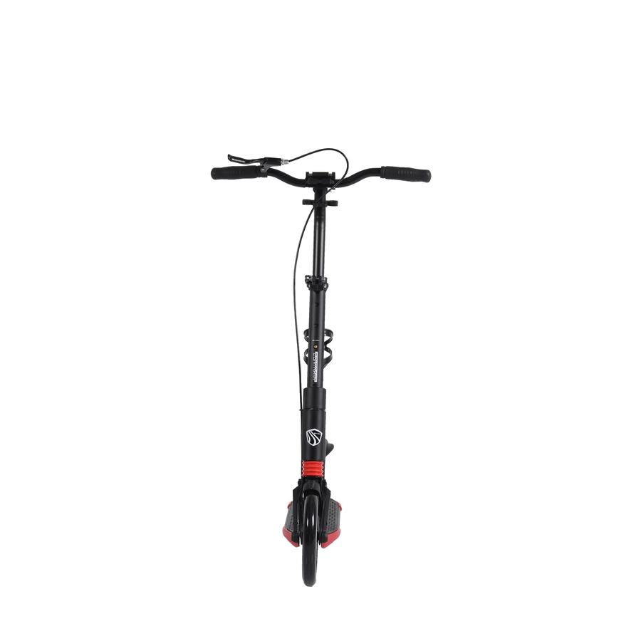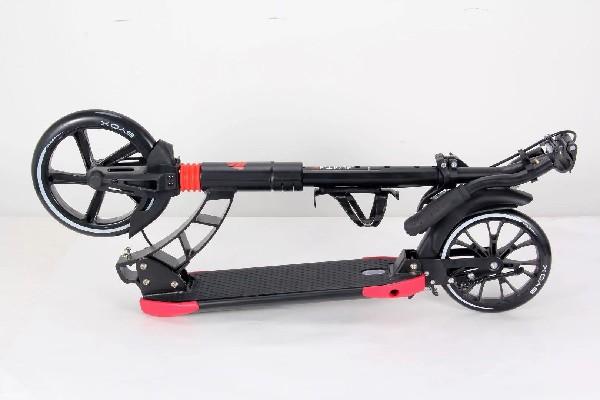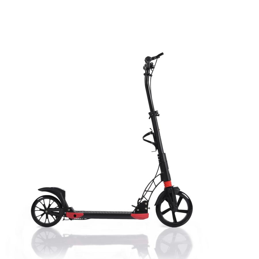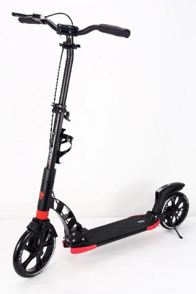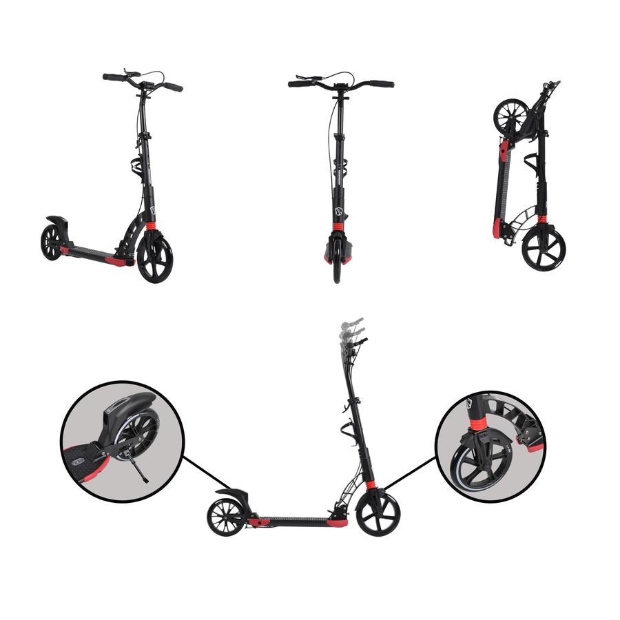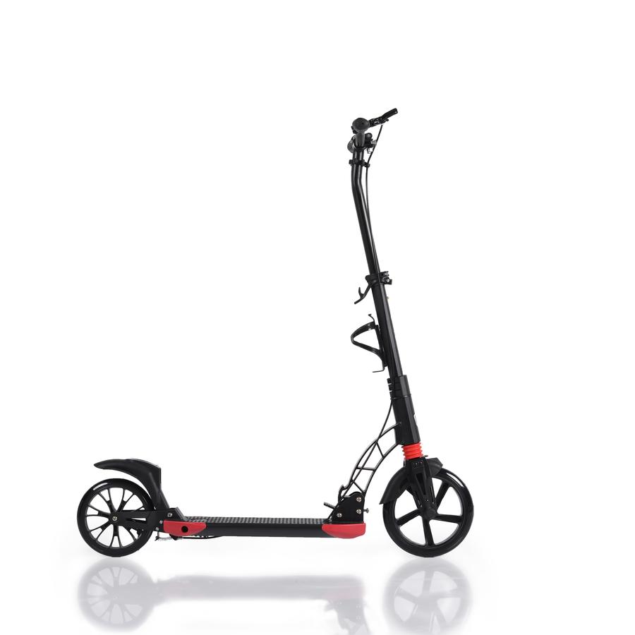 Ръчна задна спирачка, преден и заден амортисьор, гумирано противохлъзгащо покритие на основата за стъпване, странична стойка.