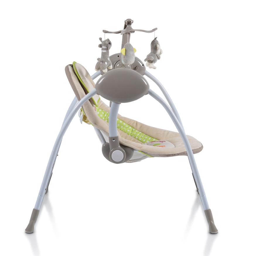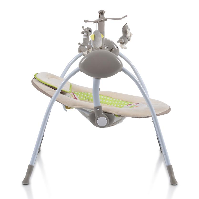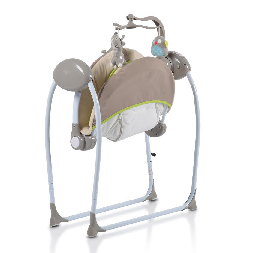 Електрическа люлка Baby Swing+ предоставя на детето удобство, забавление и спокоен сън. Подходяща е за ползване от самото раждане до достигане на максимално тегло от 9 кг. Чудесно място за сладък бебешки сън и любимо място за детски игри и забавления. Люлката има 5-степени на люлеене, които са обозначени със светещи индикатори и е с автоматично изключване след 15, 30 или 60 минути, нежни мелодии и природни звуци.
