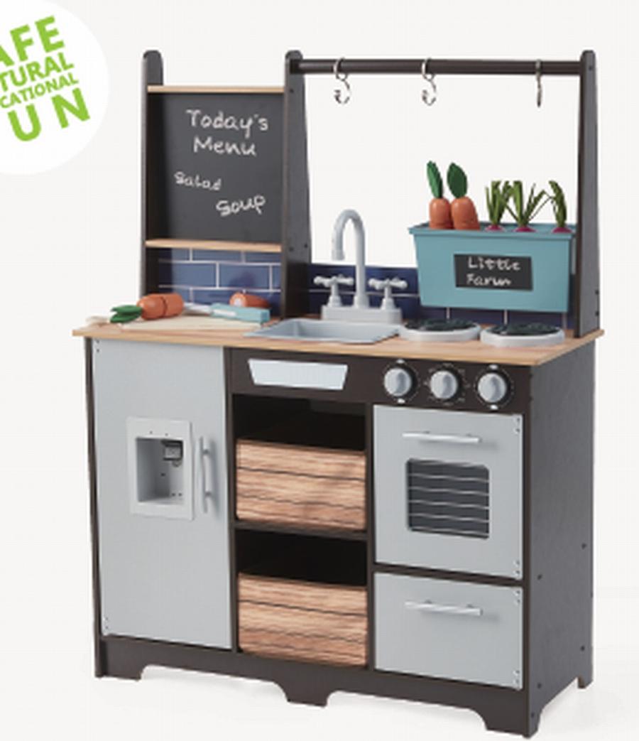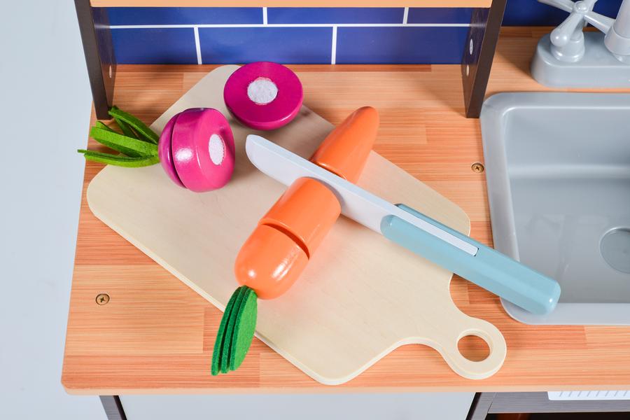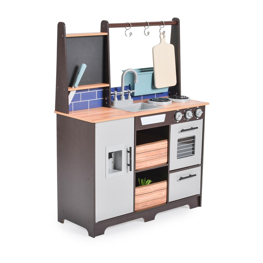 Дървена кухня Тоскана е чудесна възможност за всички малки бъдещи готвачи да навлязат в света на кулинарията. С тази кухня ще са оборудвани с хладилник, мивка, котлони, фурна, дъска и нож за рязане и зеленчуци които да режат. Младите готвачи разполагат и с черна дъска, на която да записват менюто.