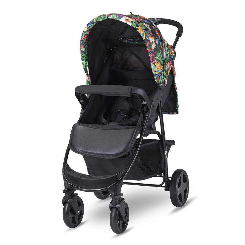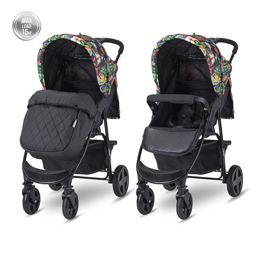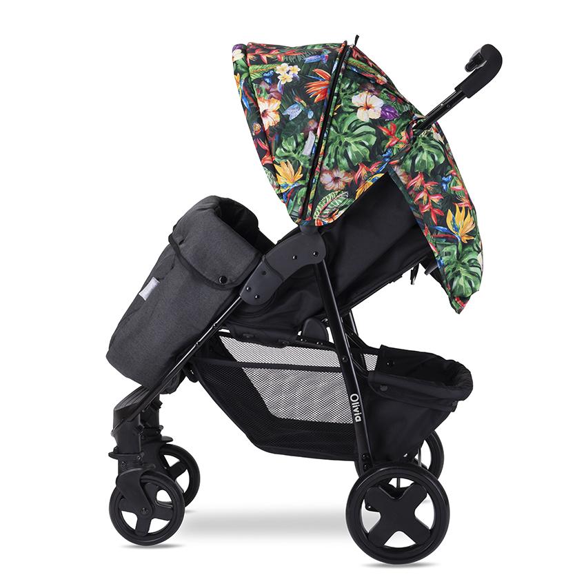 многопозиционна облегалка,подвижна поставка за крачетата,сгъваем сенник с допълнителна секция,5 точкови предпазни колани,прозорче на сенника,покривало за крачета,еко кожен протектор,голям кош за пазаруване,сгъваема до компактни размери,спирачка на задните колела,гриф,завиващи предни колела с възможност за застопоряване