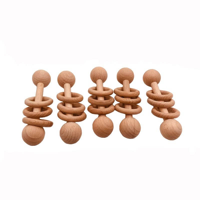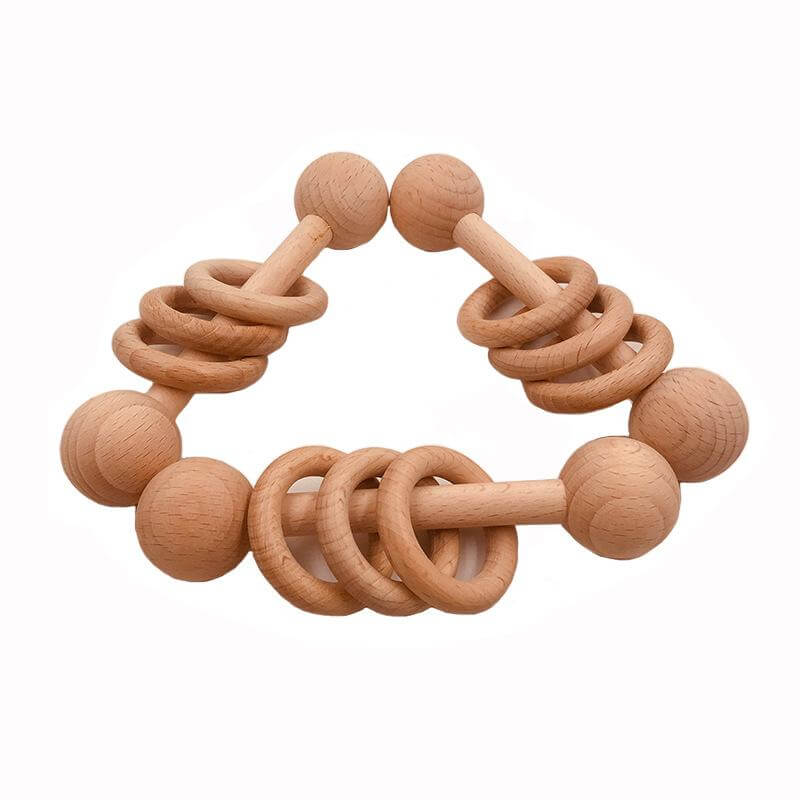 Дървена бебешка дрънкалка с пръчковидна форма и три ринга, която при разклащане издава звук.Чрез боравене на бебето с дрънкалката, то постепенно постига координираност между ухото, окото и ръката си. Открива, че усещането на предмета в ръката му съответства на формата, която вижда. Освен това то осъзнава, че чрез движението на ръката може да произвежда звук, съответно по-силен или по-слаб, в зависимост от силата, която упражнява върху дрънкалката.Размери: 10х2,5х2,5см. Тегло: 50гр.Подходяща за деца над 3 месеца.В сайта ни ще намерите голямо разнообразие от Монтесори материали и играчки.А в блога ни ще откриете много полезна информацият за метода Монтесори.