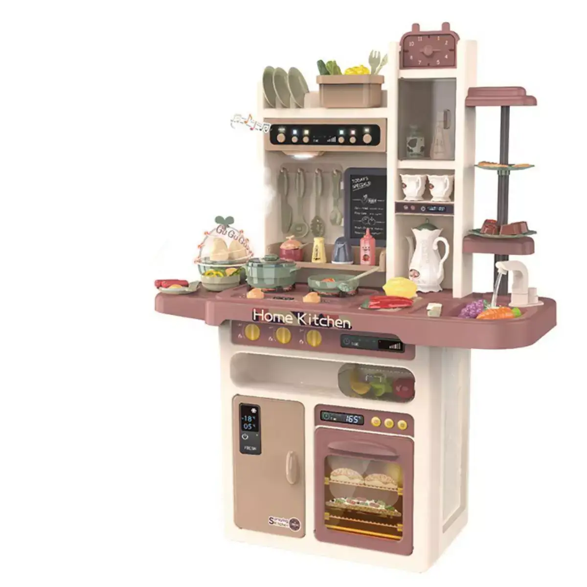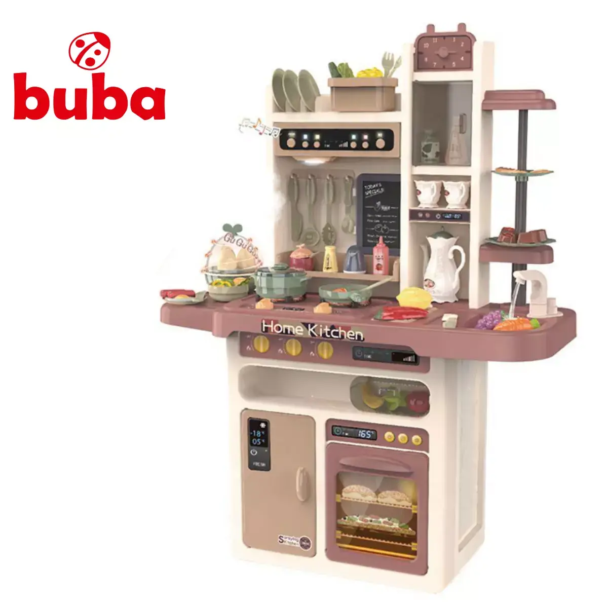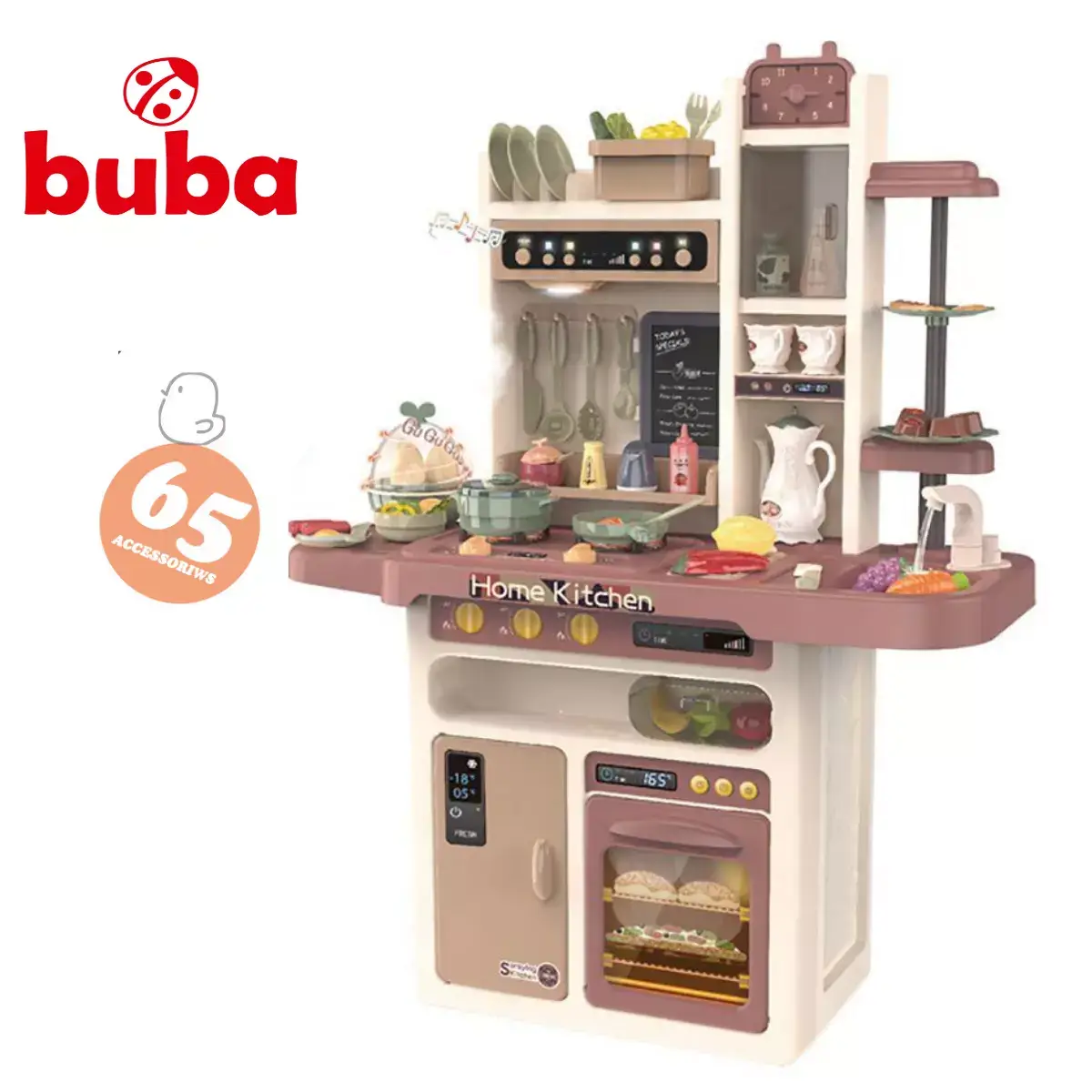 Детска кухня Buba Modern Kitchen с аксесоари – най-богатият набор от аксесоари в детска кухня! Отдавна е известно, че всяка дама в къщата, била тя малка или голяма, мечтае за красива функционална кухня. Този многофункционален детски кухненски комплект е като цяла кухня в миниатюрен вариант. Комплектът се състои от 65 елемента, необходими за удобното функциониране на кухнята. Какво прави кухнята: Мивка с кран и течаща вода: По време на игра наистина можете да миете продукти, чинии и посуда -просто изсипете 1 чаша вода в мивката и когато натиснете специалния бутон зад крана, водата започва да тече от нея. 2 котлона със светлина и звук(единия котлон има функция пара): Изсипете малко количество в котлона за да започне да работи. Парата е студена и безвредна! Котлонът работи на принципа на овлажнителите за въздух. Закачалки за аксесоари и рафтовете помагат за изрядният вид на кухнята. Яйцеварка за 4 яйца: Със светлини и звуци, прилича на истински уред. Аксесоари: Съдове, хранителни продукти и аксесоари. * Съставът на аксесоарите зависи от вида и може леко да варира !!! Спецификация: Размери на кухня