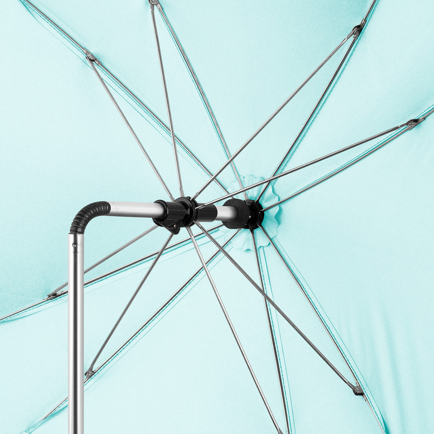 Цялостна защита срещу слънчевите лъчи Младата и нежна кожа на вашето бебе все още не е разработила никаква защита срещу UV лъчи. Няколко минути незащитено излагане на слънце може да е достатъчно, за да изгори кожата. Слънчевото изгаряне е не само много неприятно и болезнено за вашето бебе, но и увеличава риска от кожни заболявания по-късно в живота. Детският чадър ShineSafe предлага перфектна защита от агресивни слънчеви лъчи за вашето малко. Оптимална слънчева защита благодарение на големият размер Чадърът осигурява приятна сянка на вашето бебе в детската количка в слънчеви дни. С диаметъра си от 80 см и квадратната си форма, той предлага значително повече сянка от повечето други детски чадъри. Това също ви спестява, че трябва постоянно да настройвате чадъра към местоположението на слънцето. Защита срещу вредните UV лъчи Чадърът е направен от 100% полиестер понг. Твърдите му, плътно изтъкани пластмасови влакна абсорбират до 98% от слънчевите лъчи. Предлага на чувствителната кожа на вашето бебе максималната UV защита 50+. Регулируемо по посока на слънцето заради чупещата се основа