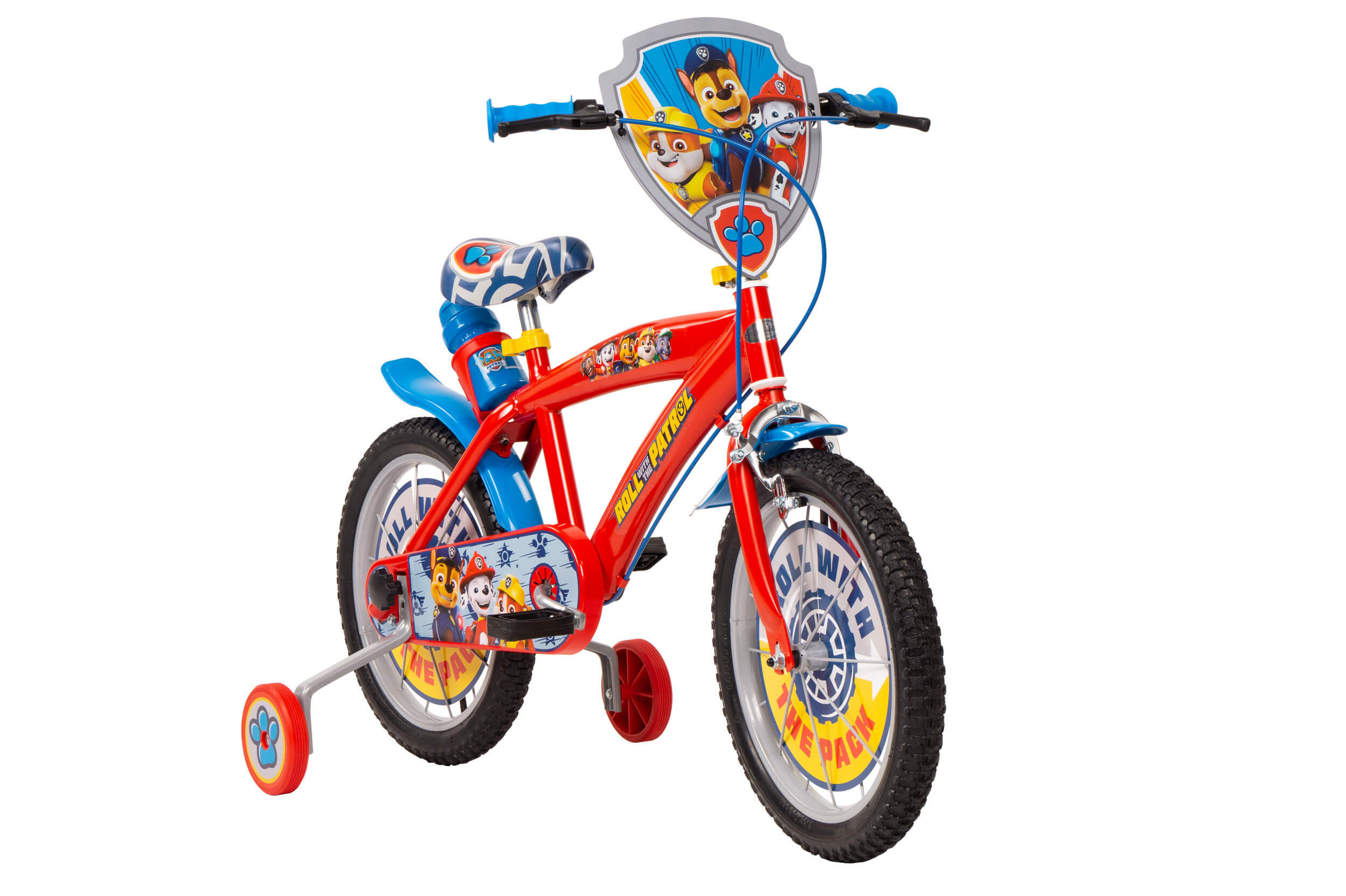 НОВ ДИЗАЙН!! Истински привличащ вниманието велосипед от Disney. - 16 инчови колела - Спирачка на джанта отпред, барабанна спирачка отзад - Подвижни помощни колела - Бутилка с държач С този велосипед в прохладния дизайн на PAW PATROL от DISNEY, младите състезатели са на първите си обиколки по особено шик и безопасен начин. Благодарение на подвижните помощни колела и регулируемата по височина седалка и кормило, велосипеда расте с размерите и уменията на ездача. Спирачката на джантата отпред и барабанната спирачка отзад, с удобни за децата дръжки на кормилото, гарантират безопасно ускорение. Над веригата е монтиран предпазител, който предпазва от наранявания. По време на обиколки в лошо време калниците предпазват от дъжд и кал. И тъй като от колоезденето се ожаднява, можете да намерите бутилка за вода в държача зад седалката. Така че нищо не стои на пътя на разходките с първия собствен велосипед. Подробности:- Стоманена рамка със стикер в PAW PATROL дизайн - Спирачка за джанта отпред, барабанна спирачка отзад, с удобна за деца дръжка на спирачката - Стикер за предните и задните помощни колела - Гуми ...
