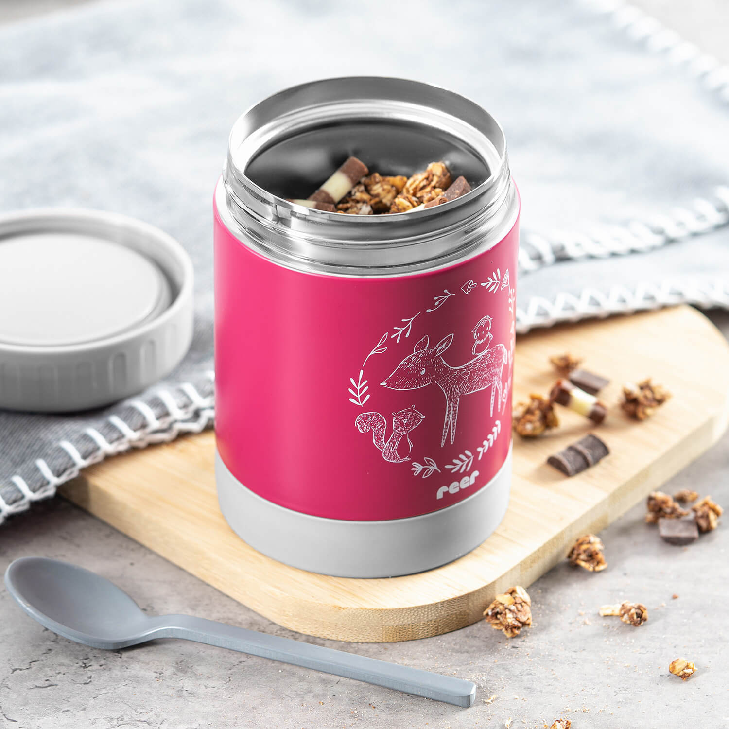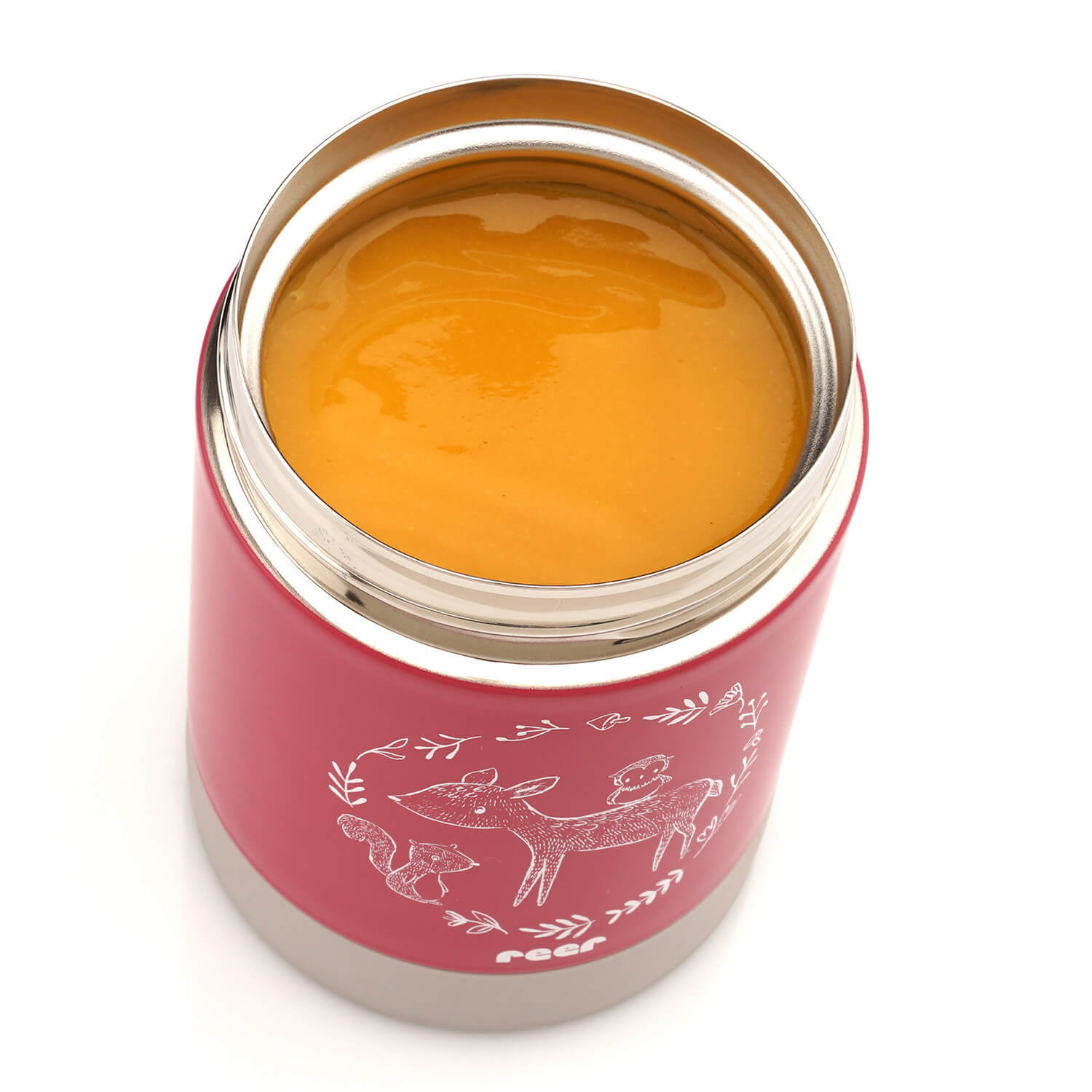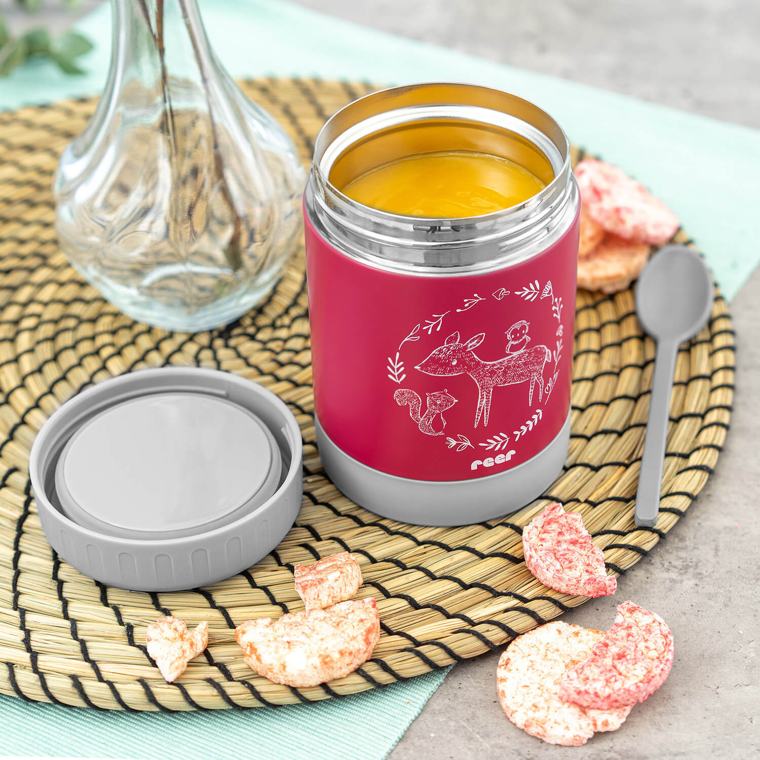 Идеален е у дома и когато сте навън Независимо дали е малка закуска или пълноценна храна, когато сте навън и със деца, най- добре е винаги да имате нещо под ръка. Когато малките се нуждаят от питателна храна и се намирате далеч от дома, кутията за съхранение си струва всяка цена. Термо кутията ColourDesign позволява безопасното и непропускливо транспортиране на храната, като я поддържа топла до 6 часа. За лесно съхранение запазва храната топла до 6 часа Термо кутията ColourDesign се състои от вакуумно изолирано двойно панелно тяло. Това гарантира, че горещата храна се поддържа топла до 6 часа - независимо от външната температура. Широко приложение Вкусна храна по всяко време Дори когато детето ви порасне и не яде пюрета, термо кутията остава ваш верен спътник при пътувания навън. Например, мюсли, ядки и бисквити могат безопасно да се съхраняват в кутията. В топлите дни плодовете и зеленчуците се поддържат приятно хладни, като се гарантира, че не губят свежестта си. Противокапкова система благодарение на