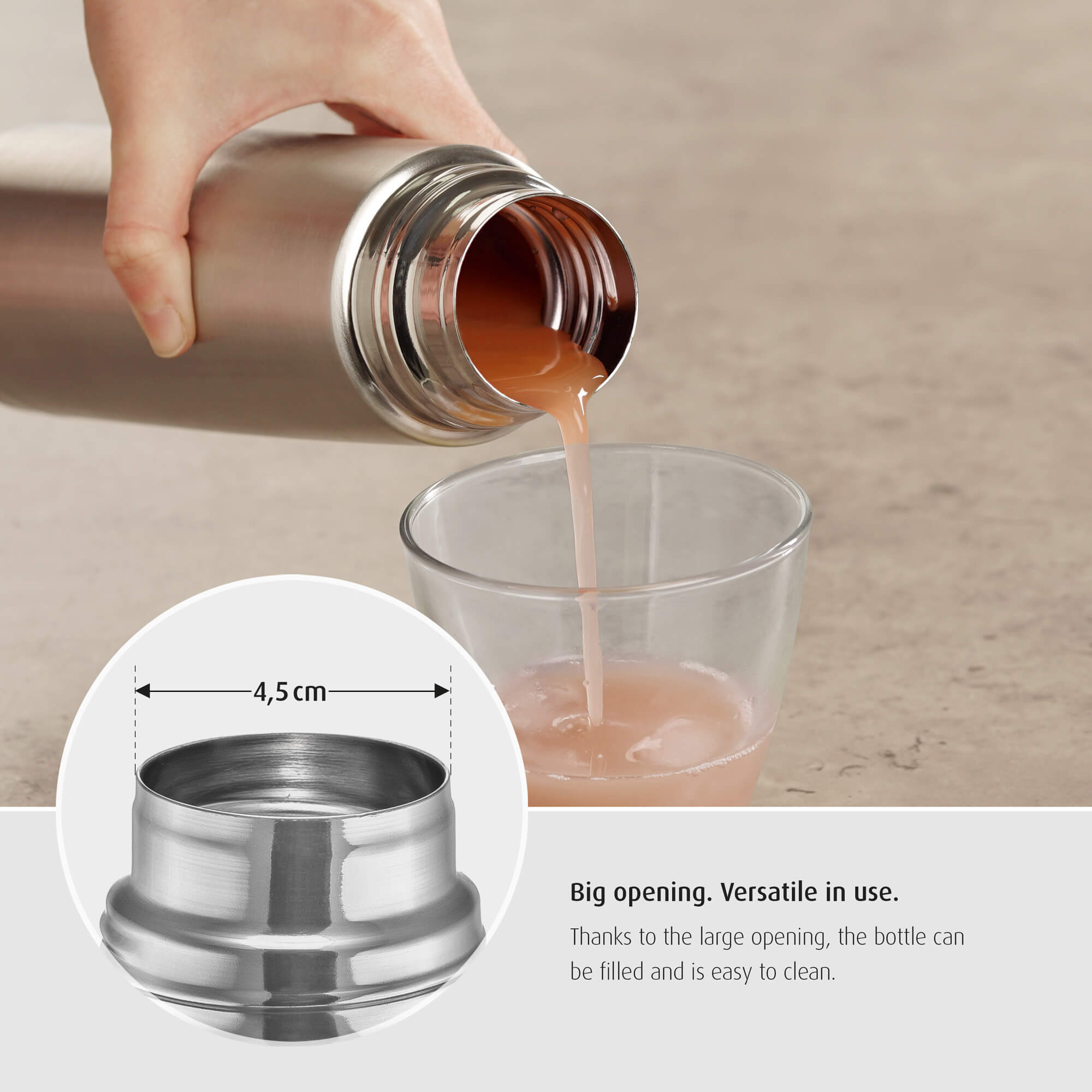 Идеален за вкъщи и навън Когато малките огладнеят, обикновено трябва да действате бързо. Наред с адаптираното мляко и бутилка има и едно нещо, от което се нуждаете преди всичко: вода с перфектната температура. Термосът ви гарантира, че имате това бързо под ръка по всяко време. Независимо дали вие и вашето бебе сте навън, или се ровите в кухнята през нощта, полузаспали: термосът поддържа водата топла в продължение на часове, което ви позволява бързо да приготвяте адаптирано мляко, без никакви притеснения. За лесно приготвяне на адаптирано мляко,поддържа водата топла до 12 часа Термосът се състои от вакуумно изолирано тяло с двоен панел. Това гарантира, че горещата вода се поддържа топла до 12 часа. Благодарение на двойната изолация, външната страна на бутилката никога не се нагрява, когато е пълна с гореща вода - по този начин предпазва от изгаряния. Практическа помощ, когато сте навсякъде и за напитки под ръка по всяко време Дори когато детето ви е израснало от мляко, изолираната колба остава вашият верен спътник при пътувания навън. През студените дни топля вас и вашето семе...