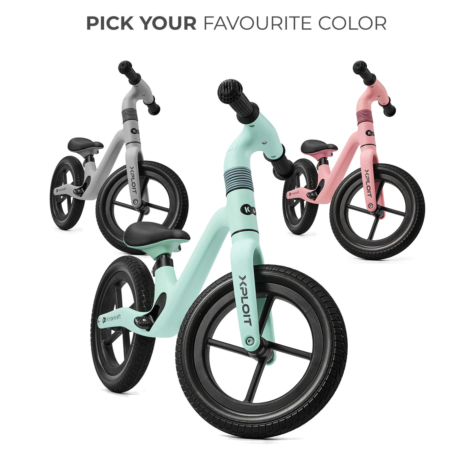 XPLOIT е велосипед за баланс, предназначен за каране при всякакви условия. Има големи, устойчиви на пробиване PU колела, които не се нуждаят от помпане - те са подходящи за използване върху неравни терени асфалт или втвърдени горски пътеки. XPLOIT е велосипед, който също учи чрез забавление. Той перфектно развива баланса и подпомага ученето как да балансирате собственото си тяло - това е идеално въведение в обучението за каране на велосипед с педали. Вашето дете също ще се научи на независимост, а карането на XPLOIT ще има положително въздействие върху изграждането на самочувствие на пътя.Това е практичен модел със сгъваеми, магнитни подложки за крака и регулируеми седалка и кормило. Има спортен дизайн, който в комбинация с красиви пастелни цветове кара всеки малък спортист да го заобича. Велосипедът ще привлича вниманието и вашето дете ще се чувства като каращо истински спортно колело. Издръжливост при всякакви условия Колелото за баланс XPLOIT е създадено за каране при всякакви условия. Рамката е изработена от издръжлива, лека пластмаса -едно цяло, без нужда от сглобяване: Т