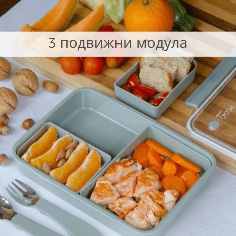 Вкусен и здравословен обяд? Сега още по-лесно! Кутия за обяд, лека закуска или закуска от новата линия KiddieKit е идеалното решение за съхранение и транспортиране на храна за обяд, леки закуски или плодове, които да хапвате извън дома, в детската градина, на училище или през свободното време. Кутията за обяд се предлага в два размера от 490 мл и 950 мл в приятни пастелни цветове : Вътрешността и на двата размера се състои от подвижни отделения, които подреждате спрямо нуждите Силно модулно решение, идеално за съхранение и транспортиране на обяд, плодове или закуски. Капак с уплътнение и вентил за микровълнова фурна Вентилът на капака ви позволява да затопляте в микровълнова директно с капака, предотвратявайки изсъхването на храната; А водонепропускливото уплътнение гарантира, че няма да има неприятни течове вътре в раницата. Спецификация: Капацитет: 950 мл 3 вътрешни отделения Капак с вентил и уплътнение Може да се мие в съдомиална ( макс. 50 градуса) Може да се слага в микровълнова( не повече от 2 мин) Тест за безопасност в съответствие с разпоредбите на EN 14372(модел 4420) Без BPA Комбин...