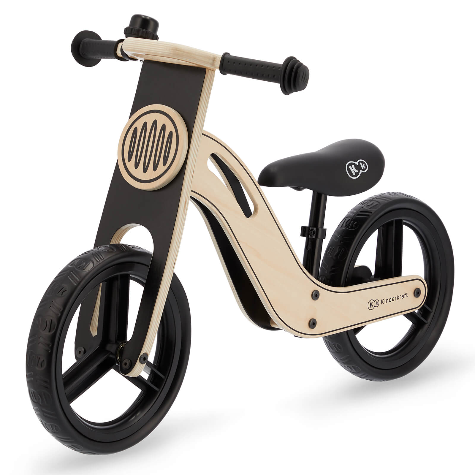 Дизайн и функционалност в едно колело! Супер леко баланс колело, перфектно във всеки детайл: от уникална графика на "фара" и принта върху рамката, метална седалка с обширна гама за регулиране и оригинален пробег. Уникалният дизайн на UNIQ впечатлява със стил! Просто погледнете оригиналните графики, поставени на "фара" и отпечатъка на рамката. Мека регулируема седалка UNIQ е единственият дървен велосипед със седалка, монтирана върху метална опора с обширен диапазон на регулиране (30-40 см). Екологично чист продукт Рамката на велосипеда е изработена от брезов дървен материал от устойчиво управлявани източници. Две дръжки за носене Една на кормилото, друга на рамката. За удобство при носене. Оригинално задвижване 12-инчовите гуми, изработени от EVA пяна, притежават уникално стъпало с логото на Kinderkraft. Безопасен дизайн UNIQ е проектиран в съответствие с най-новите стандарти за безопасност. Колелото е с ограничен диапазон на завъртане на кормилото. Звънец и гумени, не хлъзгащи се дръжки. Гумата, използвана за направата на дръжките, осигурява удобно и безопасно управ