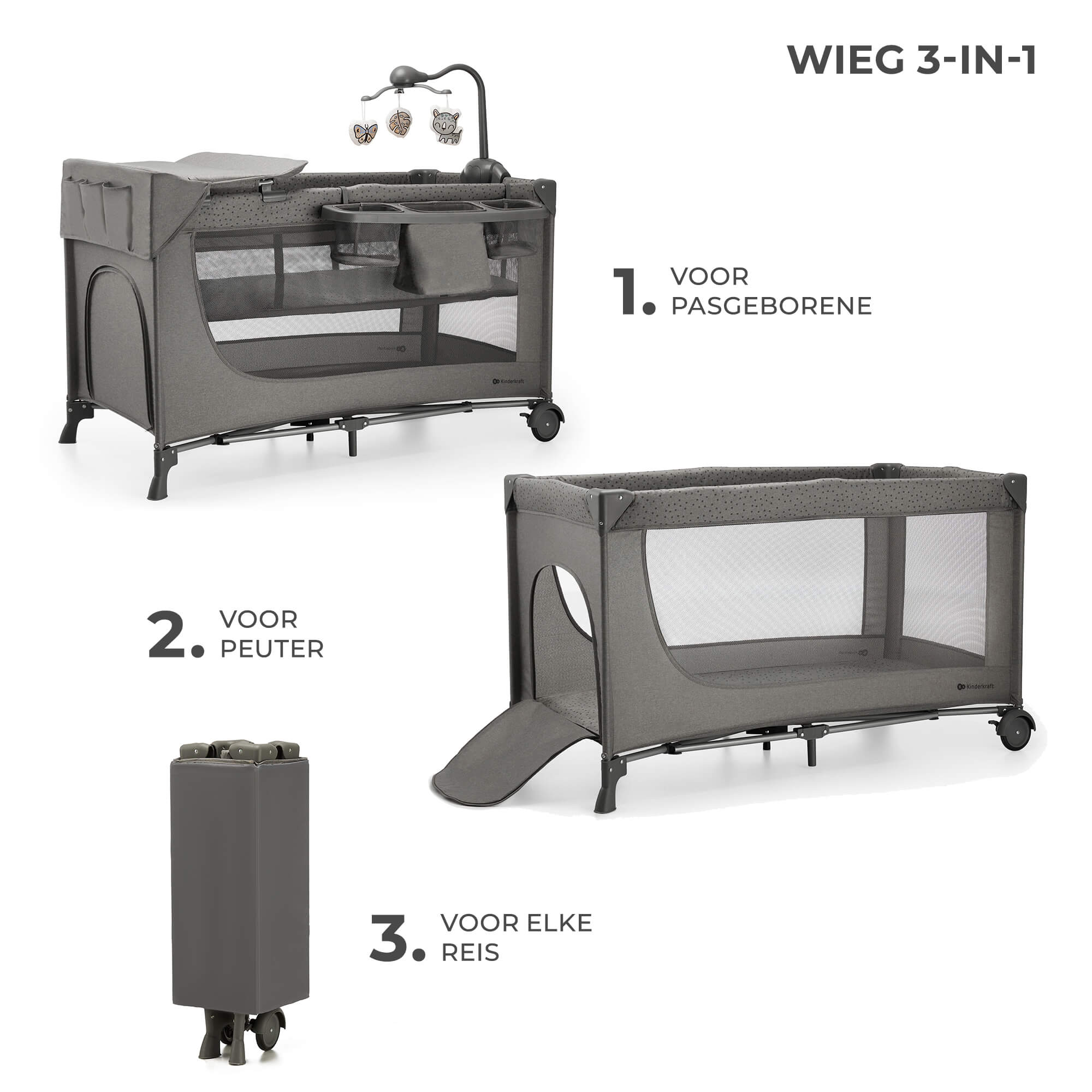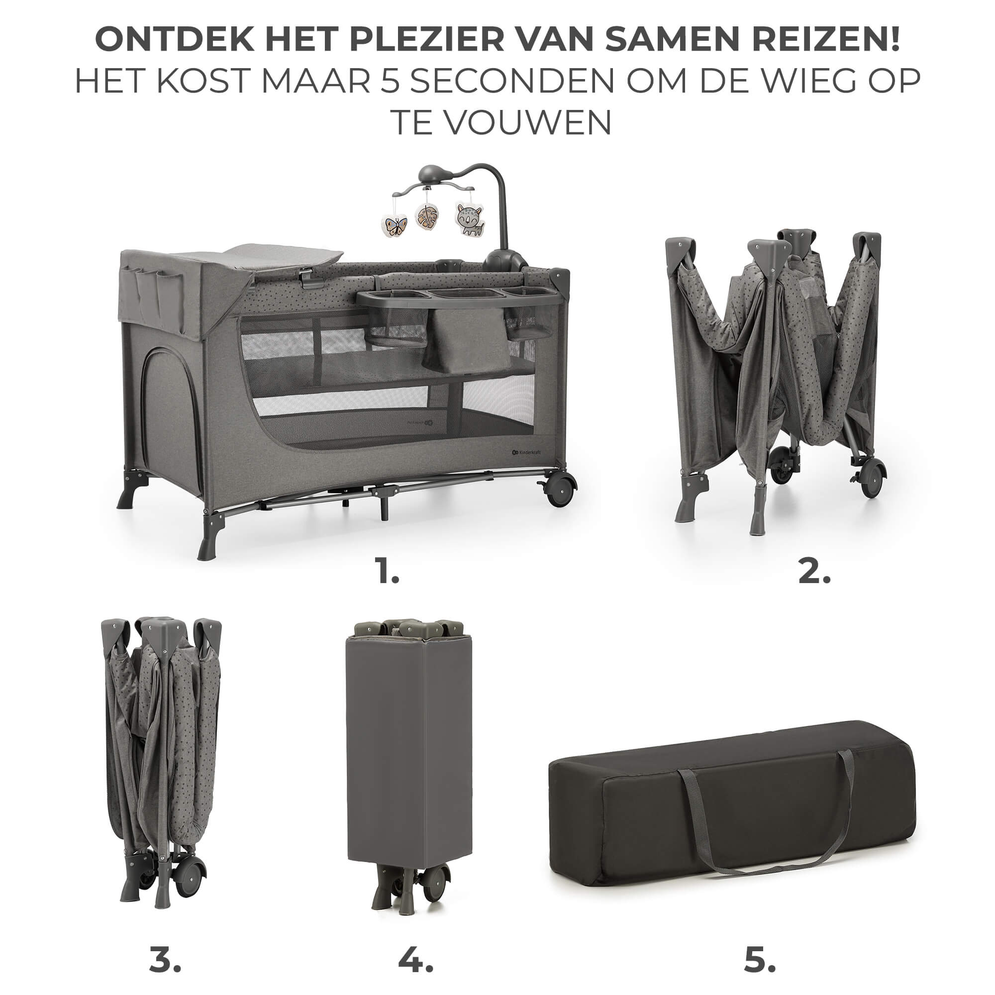 Kinderkraft JOY FULL 2 бебешка кошара с аксесоари DARK GREY