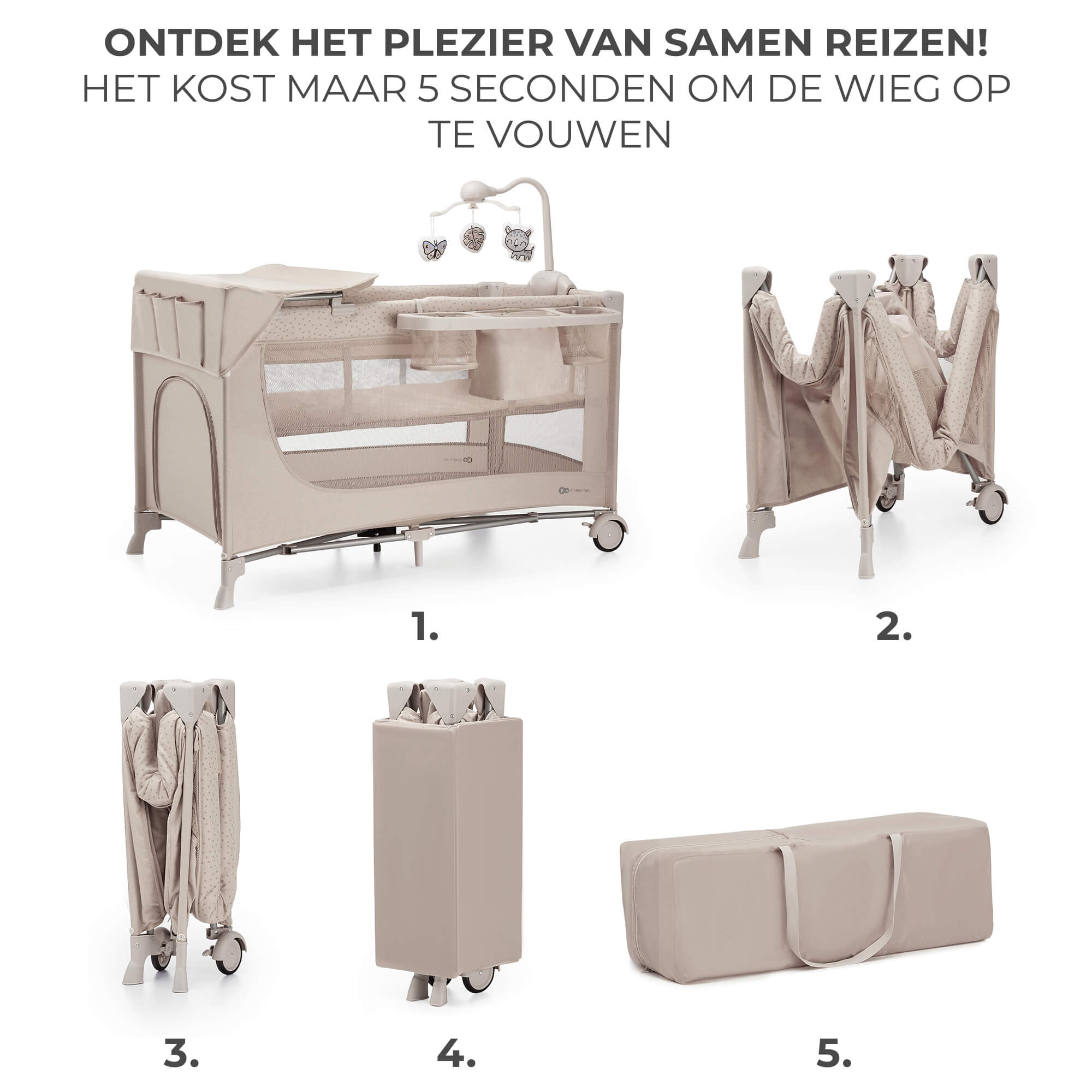 Kinderkraft JOY FULL 2 бебешка кошара с аксесоари BEIGE