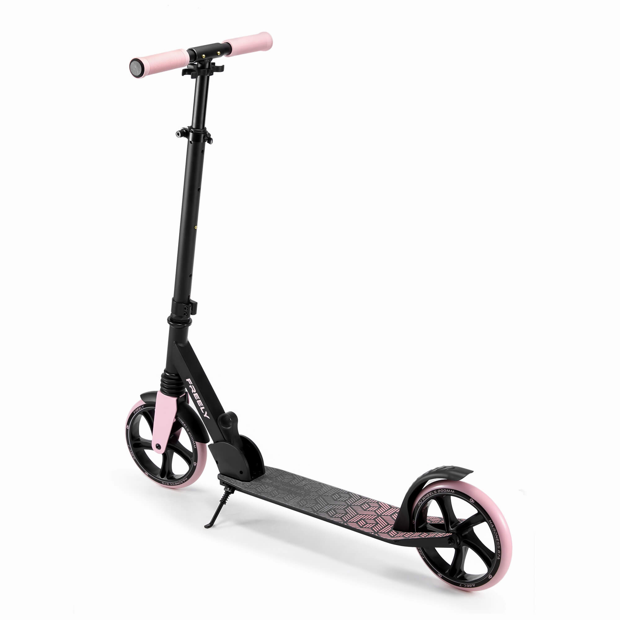 FREELY е сгъваема тротинетка за цялото семействоТя съчетава издръжливост, удобство и стил, което я прави идеален избор както за деца от 5-годишна възраст, така и за възрастни. Със своята здрава конструкция, механизъм за бързо сгъване и максимален товароносимост до 100 кг, FREELY е перфектна за ежедневна употреба и по-динамични приключения на две колела. Ключови характеристики: Солидна и издръжлива конструкция Изработена от здрав алуминий и стомана, тротинетката FREELY осигурява издръжливост дори при интензивна употреба. Стабилната ѝ платформа с допълнителен противоплъзгащ слой осигурява уверено каране върху всякаква повърхност – чудесна за приключения в града или парковите пътеки. Скорост и плавност на каране Тротинетката FREELY е оборудвана с усъвършенствани лагери ABEC-7 и големи PU колела с твърдост 87A и диаметър 20 см, осигуряващи изключително плавно каране и безпроблемно покриване на по-дълги разстояния с минимални усилия. Амортисьорите на предните колела предлагат допълнителен комфорт, като същевременно предпазват ставите на ездача от удари. Комфорт и регулируемост С 4-по