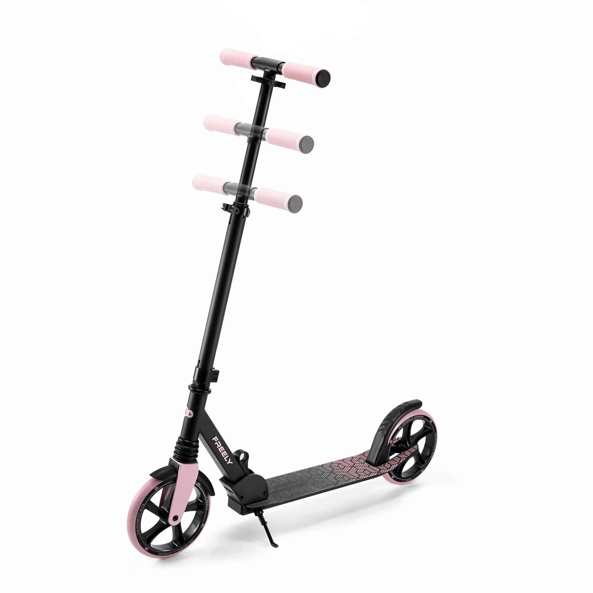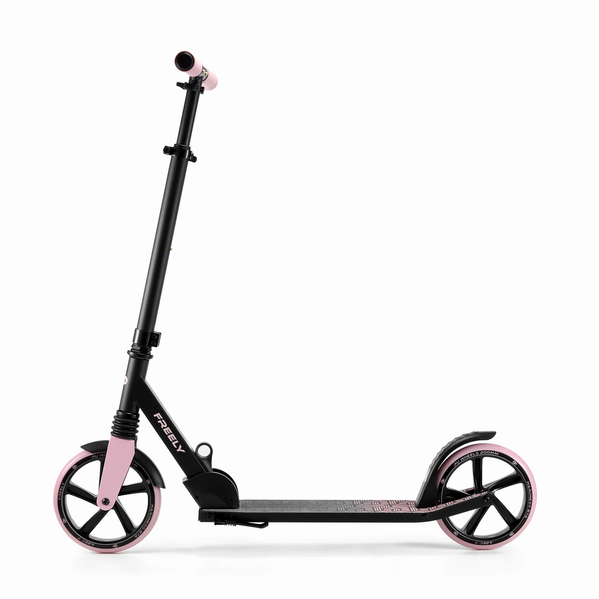 FREELY е сгъваема тротинетка за цялото семействоТя съчетава издръжливост, удобство и стил, което я прави идеален избор както за деца от 5-годишна възраст, така и за възрастни. Със своята здрава конструкция, механизъм за бързо сгъване и максимален товароносимост до 100 кг, FREELY е перфектна за ежедневна употреба и по-динамични приключения на две колела. Ключови характеристики: Солидна и издръжлива конструкция Изработена от здрав алуминий и стомана, тротинетката FREELY осигурява издръжливост дори при интензивна употреба. Стабилната ѝ платформа с допълнителен противоплъзгащ слой осигурява уверено каране върху всякаква повърхност – чудесна за приключения в града или парковите пътеки. Скорост и плавност на каране Тротинетката FREELY е оборудвана с усъвършенствани лагери ABEC-7 и големи PU колела с твърдост 87A и диаметър 20 см, осигуряващи изключително плавно каране и безпроблемно покриване на по-дълги разстояния с минимални усилия. Амортисьорите на предните колела предлагат допълнителен комфорт, като същевременно предпазват ставите на ездача от удари. Комфорт и регулируемост С 4-по