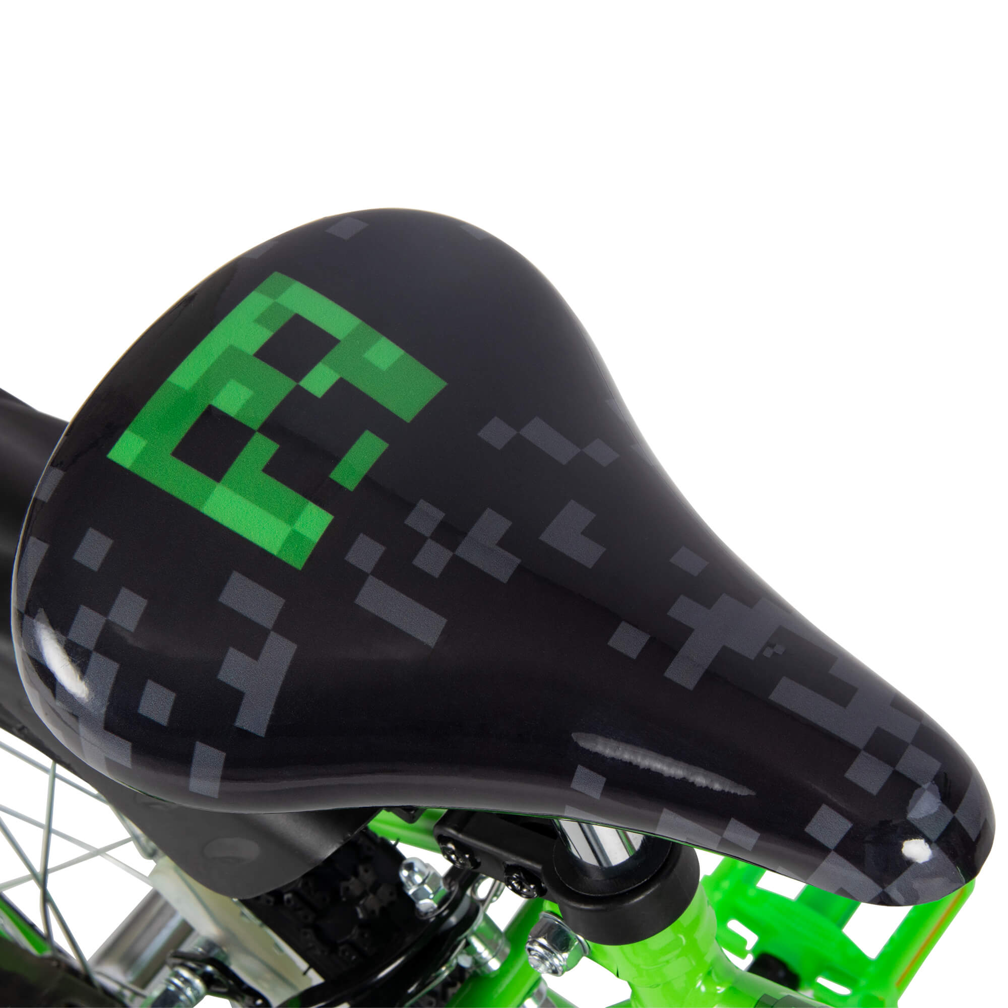 Вдъхновени от вълнуващия свят на Minecraft! След супер успешния филм, тази пролет, хитът на лято 2025 ще бъде колелото Huffy с уникалния забележим дизайн! Фен си на пикселите? Това е за теб! Със със светещи помощни колела за още по-голямо забавление! Този официално лицензиран велосипед се отличава със зашеметяващ черно-зелен пикселизиран дизайн и преден щит с Creeper на кормилото, идеално решение за всеки фен на Minecraft. Колелото е подходящо за деца на възраст от 5 до 7 години(112-127 см или тегло до 27 кг), разполага със здрава стоманена рамка, която ще издържи на всички ежедневни приключения. Седалката е подплатена, регулира се и осигурява оптимален комфорт, а здравите гуми 40,6 см (16") с атрактивни зелени джанти осигуряват отлично сцепление с различни настилки. Предните и задните спирачки позволяват на детето ви да се научи да спира безопасно и контролирано. Свалящите се помощни колела, вече оборудвани с мигащи зелени светлини, правят обучението по каране още по-забавно и улесняват прехода към двуколесно превозно средство. Напълно затвореният предпазител на веригата осигурява доп