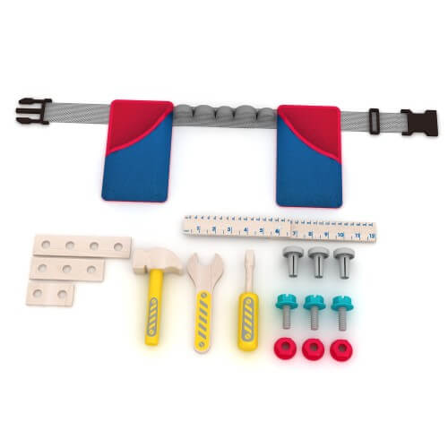Детски колан с инструменти, който се състои от 17 елемента. Комплектът включва:- колан за инструменти, изработен от плат, който лесно се закопчава на кръста;- дървени инструменти – чук, отвертка, ключ, метър;- дървени крепежни елементи;- болтове, гайки и пирони, изработени от пластмаса.Заниманията с колана за инструменти развиват координацията на движенията, сръчността, пространствената ориентация, логическото мислене и разбира се, въображението на децата.Размери на кутията: 42,5х28х6см, тегло: 700 грама.Играта е подходяща за деца над 3 години.Тук може да прочете повече за ползите от игрите с дървени играчки.Smart Baby предлага разнообразие от качествени Монтесори материали и играчки.