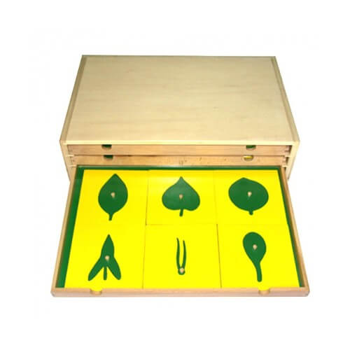 Продуктът представлява дървен скрин/шкаф с размери 47,5х31х22см. В скрина има 5 чекмеджета с отвор в средата, който позволява лесно и удобно изваждане на всяко от тях. След като се извади, всяко чекмедже може да служи като поднос, за да може децата лесно да занесат желаните материали до мястото си за игра. В горните 3 чекмеджета има четиринайсет квадрата с изрязан контур в тях. Във всеки квадрат има изрязано различен тип листо. В долните две чекмеджета има цветни карти с различни животни и растения.Целта на заниманието на децата със скрина е децата да се запознаят с разнообразието на растителния и животинския свят. Освен това заниманията с плочките развиват моториката на пръстите, усъвършенстват зрителното възприятие, провокират наблюдателност и интерес към заобикалящия ни растителен и животински свят.Размери: 47,5х31х22см, тегло: 10кг. Подходящо за деца над 4 години.Допълнителна информация за продукта може да прочетете тук.В магазина на Smart Baby може да откриете богат избор от класически Монтесори материали и играчки.