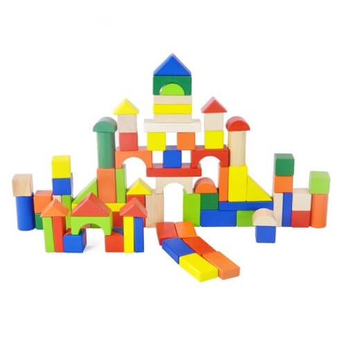 Дървена играчка конструктор, която се състои от 80 разноцветни дървени блокчета. Всички елементи на конструктора са прибрани в кофа с капак. На капака има изрязани дупки съответно с формите на различните елементи на конструктора. Всеки елемент може да мине през съответната дупка на капака и да влезе в кофата.Развива се логическото мислене и фината моторика, също така се изгражда умение за концентрация и търпение.Размери: 18х18х24см, Тегло: 1,4кг.Подходящо за деца над 18 месеца.