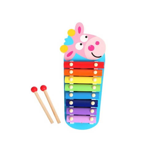 Многоцветен детски ксилофон с животно, осем метални пластини и две ударни пръчици.Забавен и атрактивен, ксилофонът е чудесен начин децата да развият усещане за ритъм и музика. Освен това е много добър начин за развитието на координацията очи-ръце и моториката на ръцете.Размер на кутията: 34,5х15,5х4см, дължина на палките: 12,7см, тегло: 500гр.Подходящо за деца над 2 години.