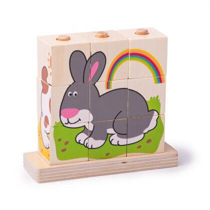 Bigjigs - Дървени кубчета за нанизване - Домашни животни