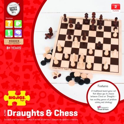 Bigjigs - Дървена игра 2 в 1 - Шах и табла