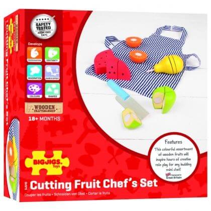 Bigjigs - Кухненски комплект с дървени плодове за рязане