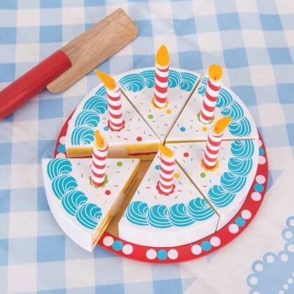 Подходяща възраст: 3+ Диаметър на тортата: 17,5 см Материал: Дърво и велкро Комплектът съдържа: 14 части Време за доставка: Един или два работни дни