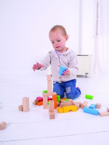 Bigjigs - Дървени многоцветни блокчета - 50 части