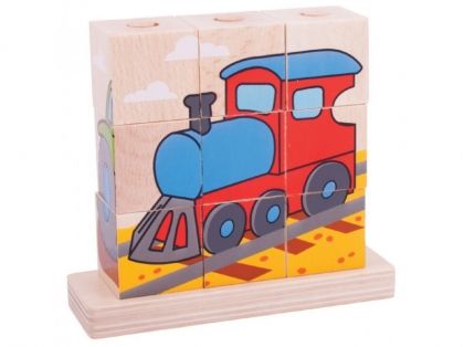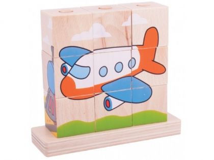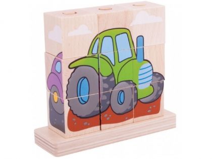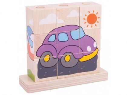 Bigjigs - Дървени кубчета за нанизване - Превозни средства