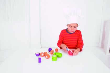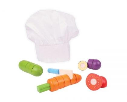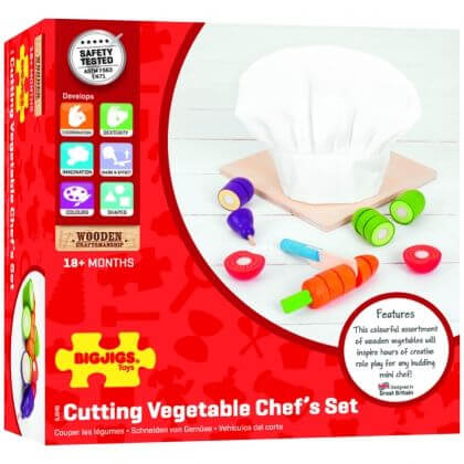 Bigjigs - Дървен готварски комплект - Зеленчуци за рязане