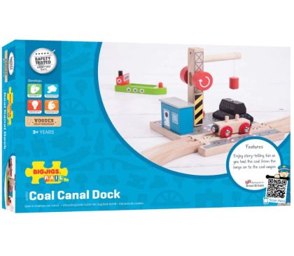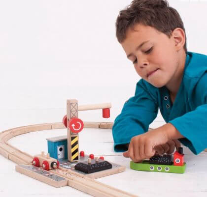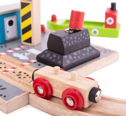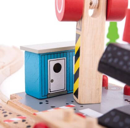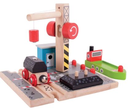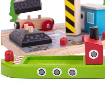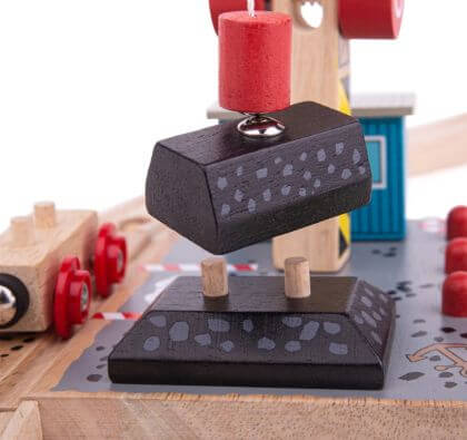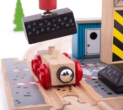 Bigjigs - Влаков комплект - Дървен кран с магнитна макара