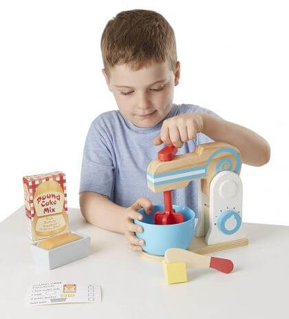 Подходяща възраст: 3+ Размер на опаковката: 35 см x 25 см x 12 см Материал: Дърво и велкро Комплектът съдържа: 11 части (миксер, купа, брашно, яйце (2 части), масло (2 части), ножче, рецепта, кекс и тавичка) Време за доставка: Един работен ден