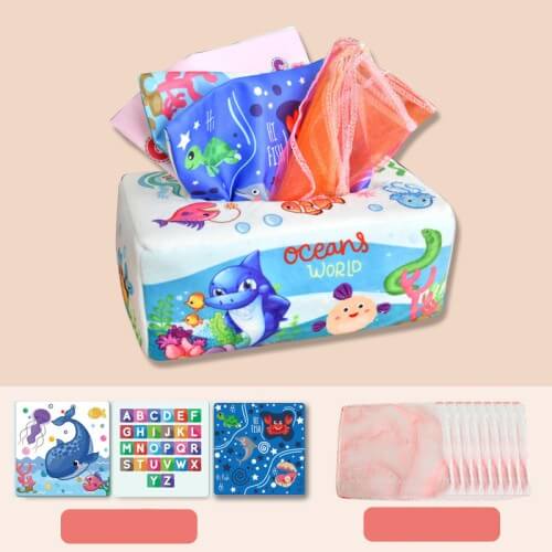 Мека бебешка шумоляща играчка - кърпички за издърпване - Морски свят