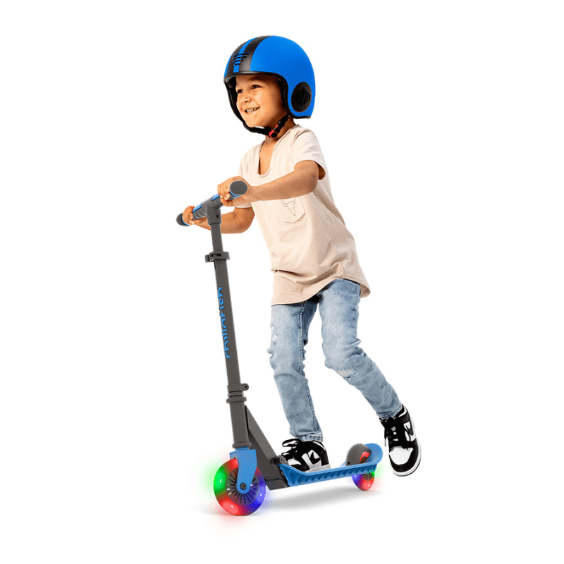 Първата сгъваема тротинетка на Chillafish с 2 колела вече свети! Flexxi е лека, лесна за транспортиране и се управлява лесно, където пожелаете! Скутерът има характерна двойна платформа с вградена крачна спирачка. Кормилото се сгъва с щракване без инструменти, за да можете лесно да вземете Flexxi със себе си при приятели или в парка. Просто отключете и сгънете, толкова е лесно! Регулирайте височината на кормилото за по-голямо удобство: може да се регулира от 67 см до 77 см. Висококачествените колела ABEC-5 ви карат да се возите, сякаш никога няма да спрете, а кормилото е снабдено с удобни дръжки, които се чувстват така, сякаш никога няма да искате да го пуснете. Платформата е лека, но здрава, за деца до 50 кг. LED светлините не се нуждаят от батерии, те се захранват просто от карането на тротинетката. Платформата е лека, но здрава, за деца до 50 кг. Играйте по-дълго! Спецификация: За деца над 5 годишна възраст (110+ см) Натоварване до 50 кг Регулируема височина на дръжката от 67-77 см Тегло на продукта: 2,8 кг Размери: 53.5 х 67,2 х 29,2 см Информация за безопасност: Внимание! Сглобяването настройката трябва да се пр