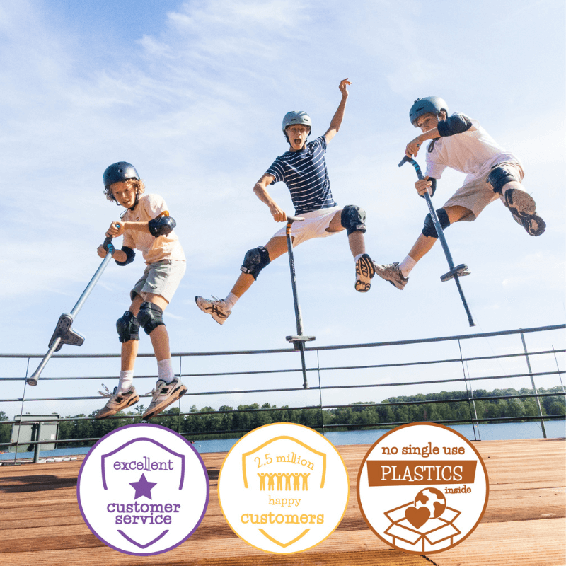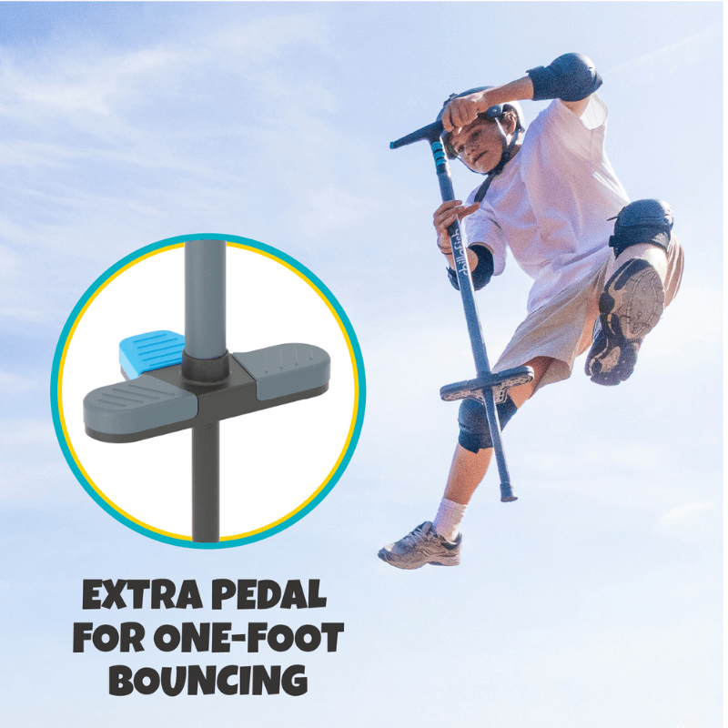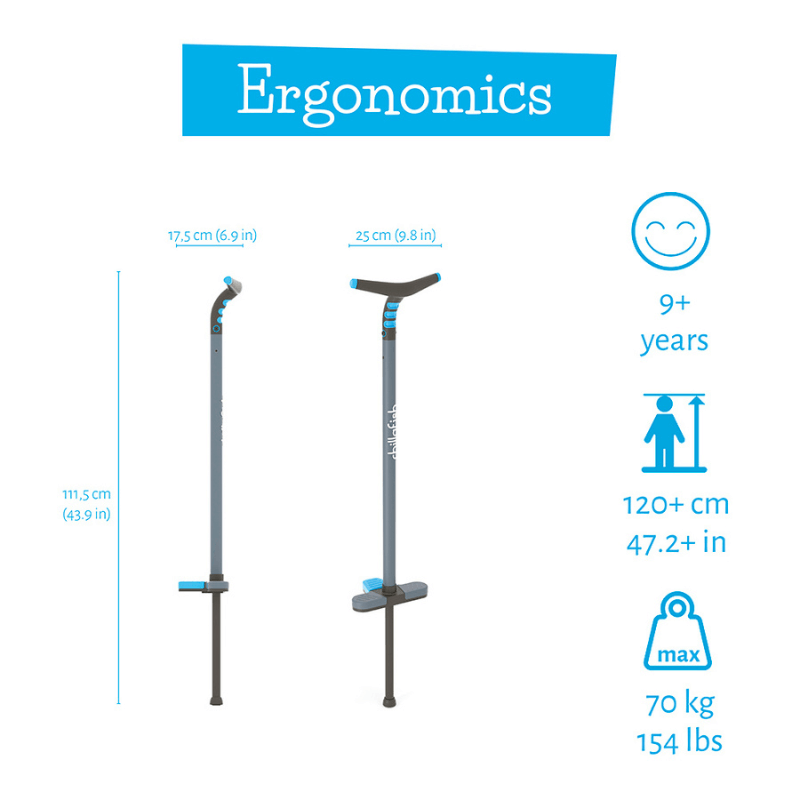 Chillafish Poogi е стик за скачане, проектиран със забавни допълнителни предизвикателства. Можете ли да правите подскок с 1 ръка? Или на 1 крак? Този забавен стик за скачане има централизирана допълнителна стъпенка и ергономична ръкохватка, за да изпробвате упражнения с една ръка или с един крак. Предизвикайте себе си за допълнително забавление! Упражнявайте баланс, като преминавате от два крака на един! И след това се опитайте да пуснете и ръка, стъпка по стъпка. Универсалната мека ръкохватка е проектирана за една или две ръце. Пого стикът е проектиран с неуморна здрава пружина вътре в тръбата, която ще ви държи в движение завинаги. Той е чудесен за развитие на грубата моторика и физическа подготовка. Предизвикайте приятелите си и скачайте възможно най-високо! Спецификация: Поги стик teen: за 9+ години Ръст: 120+ см Максимално тегло: 70 кг Размери: 111,5 х 17,5х 25 см/ 2,7 кг Доставя се сглобен. Информация за безопасност: Подходящо максимално натоварване 70 кг! Задължително носете предпазни средства през цялото време, докато скачате. Разгледайте инструкцията за ползване н