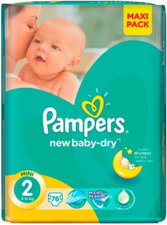 Памперс new baby-dry S2 3-6кг. VPP Мини 76 бр.