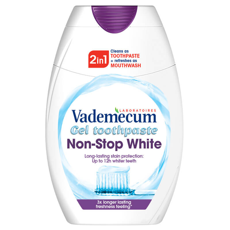 Vademecum 2in1 Fresh & Non-Stop White Гел паста за зъби. Предпазва от повторно оцветяване
