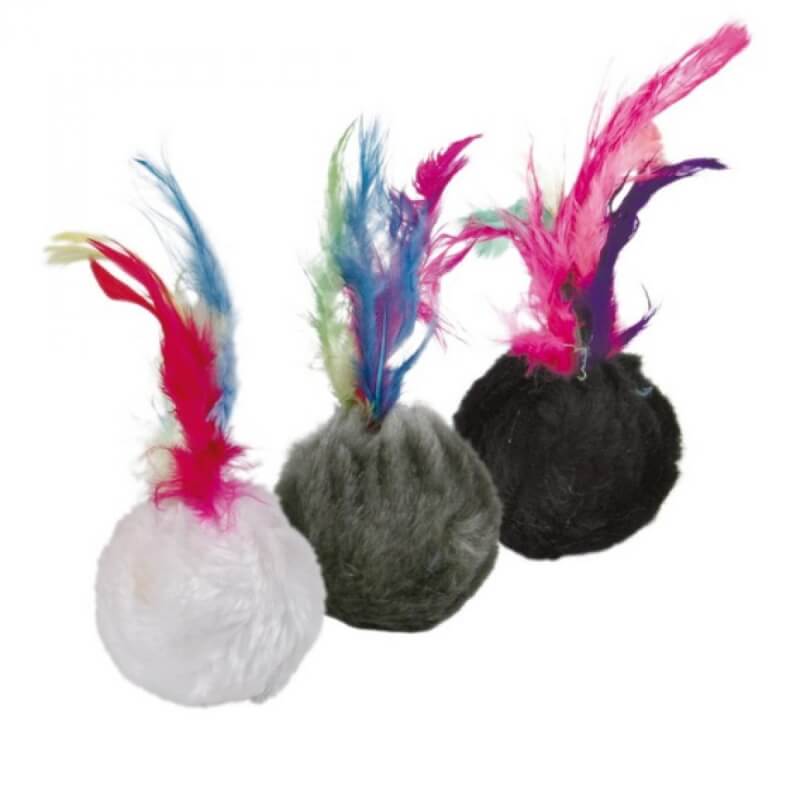 Trixie Пухкави топки с пера / сива, черна, бяла / 4 см