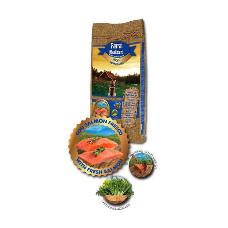 Farm Nature Adult - храна за израстнали кучета сьомга с ориз 12.5кг